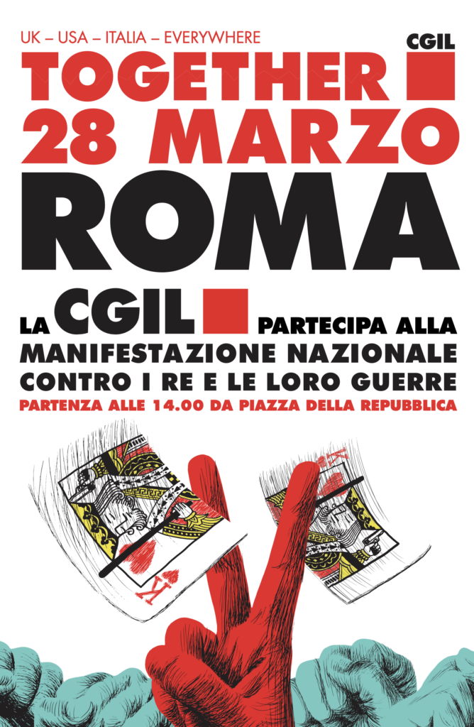 Il 28 marzo sarà una giornata di mobilitazione mondiale convocata dalla rete americana No Kings contro la torsione autoritaria, l’attacco alla democrazia e al multilateralismo, e il caos globale, provocati dalla politica di Trump. Questa giornata viene ripresa dai movimenti per la pace, contro il riarmo e le politiche repressive che attraversano i continenti.